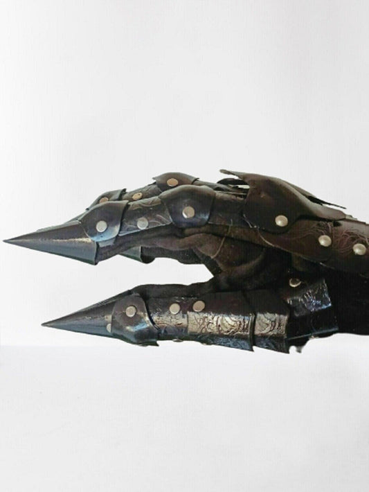 Medieval black metal gauntlets with gothic flair, perfect for crusader style